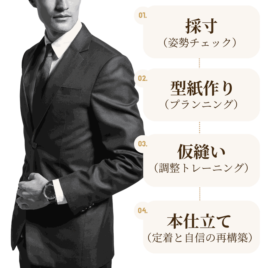 鏡を見ると背中が丸くなり、スーツのシルエットもどこか決まらない。
